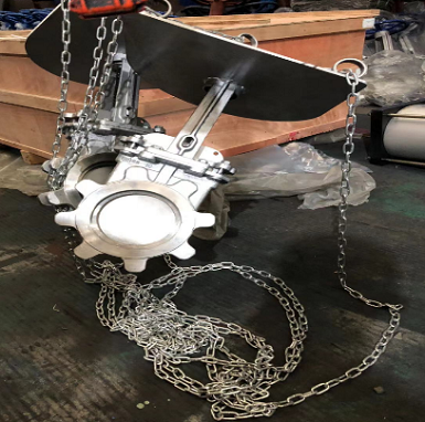 PZL73X、W、Y-10P DN100、DN150、DN250链轮刀型闸阀PZL73H-10P-DN200的链传动由两个链轮和缠绕在两轮上的中间挠性件——链条所组成。靠链条与链轮之间的啮合来打开或关闭刀形闸阀闸板。通常用于远程操作位于高处,或通常难于靠近的工况下。