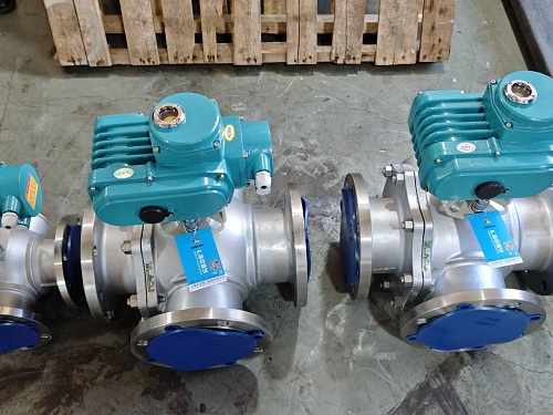 电动三通球阀根据阀门流道结构形式的不同,分为Y型、L型和T型三种,以满足各种工况对介质不同流向的控制要求,其中L型和Y型主要用于管路中介质流动方向的切换,而T型则适合管路介质的分流、合流及流向的切换。本产品驱动装置使用电能作为动力来操作阀门动作,用以控制物料的流动方向以实现一进一出(换向)、一进二出(分流)及二进一出(合流)等。