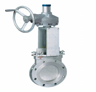 PZ573X、W、Y-10C PZ573H-10C DN200伞齿轮刀型闸阀DN300、DN150、DN250,气动刀型浆液阀,它的启闭件是闸板,闸板的运动方向与流体方向相垂直,靠可以切割纤维材料的刀刃形闸板来切断介质。刀型闸阀关闭时,密封面可以只依靠介质压力来密封,即依靠介质压力将闸板的密封面压向另一侧的阀座来保证密封面的密封,这就是自密封.大部分刀型闸阀是采用强制密封的,即阀门关闭时,要依靠外力强行将闸板压向阀座,以保证密封面的密封性。本类阀门在管道中一般应当水平安装。